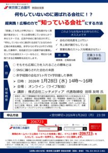 年末年始休業日のお知らせ 2025 11/26 お知らせ 2025年11月26日 この情報へのアクセスはメンバーに限定されています。ログインしてください。メンバー登録は下記リンクをクリックしてください。既存ユーザのログインユーザー名またはメールアドレスパスワード ログイン状態を保存する パスワードを忘れた場合 パスワードリセット新規ユーザー登録会員種別法人のお客様個人事業主/店舗経営者のお客様教育事業のお客様会員限定コンテンツのみ閲覧されたい方御社・団体名/屋号/フリーランスの方はお名前フリガナご担当者名*ご担当者名フリガナ*本店所在地事務所所在地本店所在地と同じ場合はチェック経営をされていますか?選択してください経営をされている方経営をされていない方お名前(ニックネーム可)フリガナお名前ユーザーID(半角英数字・記号)*メールアドレス*お仕事について(大分類)製造業建設業小売・流通飲食・宿泊IT・情報通信教育・福祉医療・介護運輸・物流金融・保険その他役職について(小分類)代表取締役取締役店主・オーナー管理職個人事業主その他お仕事について(大分類)製造業建設業小売・流通飲食・宿泊IT・情報通信教育・福祉医療・介護運輸・物流金融・保険官公庁・自治体議会・議員事務所農業・園芸漁業メディア広告クリエイティブ・制作その他お仕事について(小分類)一般職主任係長課長部長公務員教員議員その他お誕生日御社名御社名フリガナ郵便番号住所/建物名・部屋番号設立年月日名(First name)*ミドルネーム(Middle name)氏(苗字・Last name)*氏(フリガナ)*ミドルネーム(フリガナ)名(フリガナ)*入力ガイド*必須項目 お知らせ ホームページをリニューアルしました 新年のご挨拶 関連記事 【お知らせ】東京商工会議所、セミナー登壇決定! 2026年1月21日 ホームページをリニューアルしました 2025年11月7日